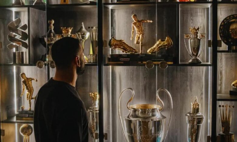 محمد صلاح يستعرض إنجازاته مع ليفربول بصورة “دولاب البطولات