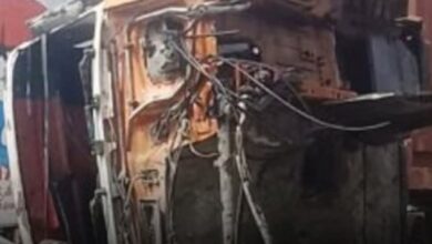 اصطدام تريلا بمحطة الأتوبيس الترددي على الطريق الدائري