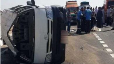 إصابة 7 أشخاص فى حادث تصادم 3 سيارات بمحور الأوتوستراد