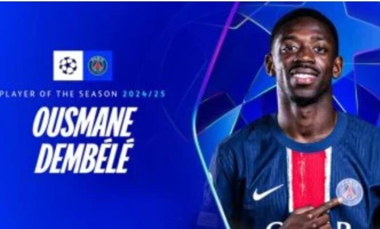 اختارت اللجنة الفنية فى الاتحاد الأوروبي لكرة القدم “يويفا” النجم الفرنسي عثمان ديمبيلي لاعب باريس سان جيرمان أفضل لاعب في دوري أبطال أوروبا لموسم 2024-2025، بعد موسم تألق فيه على كافة المستويات وساهم بشكل مباشر في تتويج فريقه باللقب القاري.