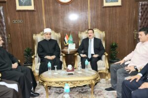 محافظ المنوفية يستقبل مفتى الجمهورية بمكتبه لتقديم واجب العزاء فى شهداء حادث الإقليمي