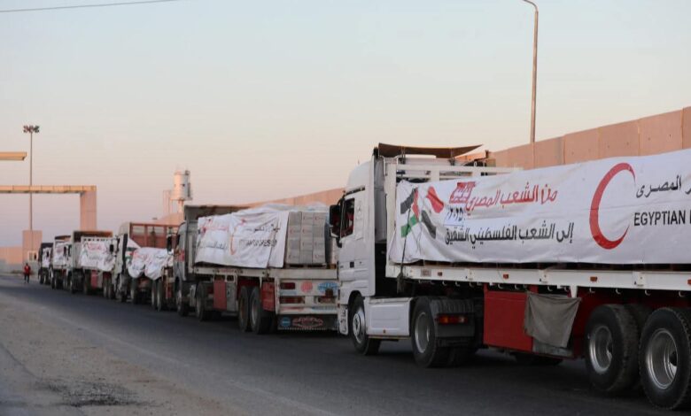 الهلال الأحمر المصري يُطلق قافلة “زاد العزة”.. 100 شاحنة محملة بـ1200 طن أغذية لقطاع غزة