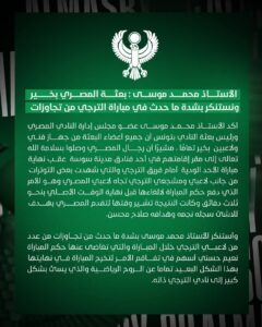 المصري البورسعيدي يستنكر ما حدث من تجاوزات بـ مباراة الترجي الودية