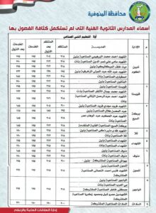 محافظ المنوفية يقرر النزول بدرجات القبول بالثانوى العام إلى 227 درجة بدلاً من 230