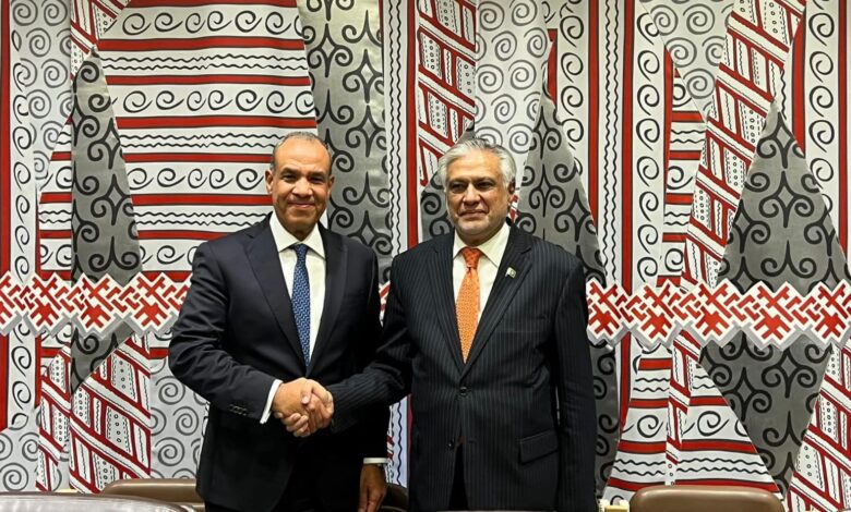 التقي د. بدر عبد العاطي وزير الخارجية والهجرة، اليوم ٢٨ يوليو، بالسيد “محمد إسحاق دار” نائب رئيس الوزراء ووزير خارجية باكستان، علي هامش فعاليات “المؤتمر الدولي رفيع المستوي للتسوية السلمية لقضية فلسطين وتنفيذ حل الدولتين” المنعقد بمقر الأمم المتحدة في نيويورك.
