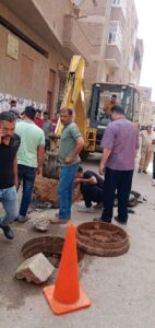و المعاينة الأولية كشفت عن وجود كسر بخط الصرف الصحي الرئيسي قطر 10 بوصات، وتسرب للمياه وتآكل بالتربة أسفل الطريق، ما تسبب في حدوث الهبوط الأرضي، وجارٍ العمل على إصلاحه.