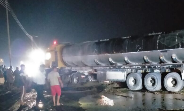 إنقلاب سيارة محملة بزيت الطعام على طريق بلطيم وإصابة شخص والحماية تتدخل للسيطرة على الموقف