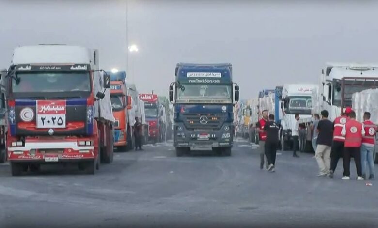 تحرك الفوج الثاني من قافلة المساعدات الـ 31 من مصر إلى غزة