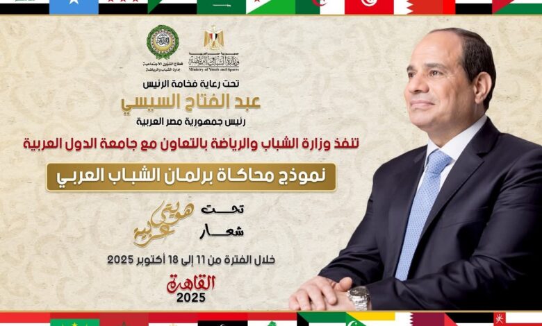 في إطار حرص الدولة المصرية بقيادة فخامة الرئيس عبدالفتاح السيسي على دعم قضايا الشباب وتعزيز الانتماء العربي المشترك، تطلق وزارة الشباب والرياضة بالتعاون مع جامعة الدول العربية فعاليات النسخة الثالثة من نموذج محاكاة برلمان الشباب العربي، خلال الفترة من 11 إلى 18 أكتوبر 2025، تحت شعار “هويتي.. عربية”، بمشاركة 60 شاباً وفتاة من 12 دولة عربية هي: مصر، فلسطين، ليبيا، اليمن، العراق، تونس، الإمارات، سلطنة عمان، قطر، الأردن، الصومال، وموريتانيا.