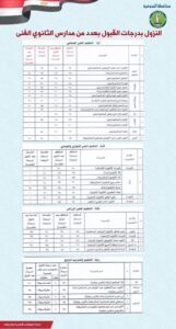 كما وافق محافظ المنوفية على النزول بمجموع درجات القبول ببعض المدارس الفنية ( صناعي ، زراعي ، تجاري ، فندقي وخدمات) وذلك لطلاب الصف الأول الثانوي الفني لاستكمال كثافات الفصول ، جاء ذلك بناء علي مذكرة مديرية التربية والتعليم بشأن استكمال الكثافات الطلابية بعدد من المدارس بنطاق المحافظة .