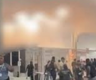 واندلعت النار داخل جناح أحد البلدان المشاركة عند المدخل، وتسببت بانتشار دخان كثيف في الداخل، فيما كان الأمنيون يحاولون إخماد النيران مع وصول عناصر إطفاء الى المكان.