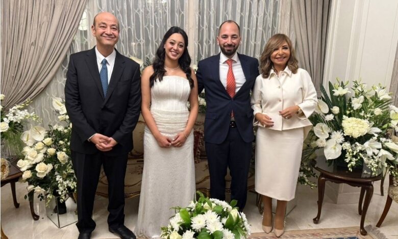 الإعلاميان عمرو أديب ولميس الحديدي يحتفلان بقراءة فاتحة ابنهما نور