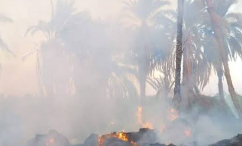 حريق يلتهم نخيلا في قرية المساوية بإسنا