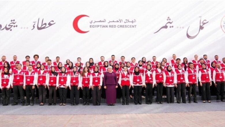 السيدة انتصار السيسى شعار الهلال الأحمر المصرى اليوم عمل يثمر عطاء يتجدد
