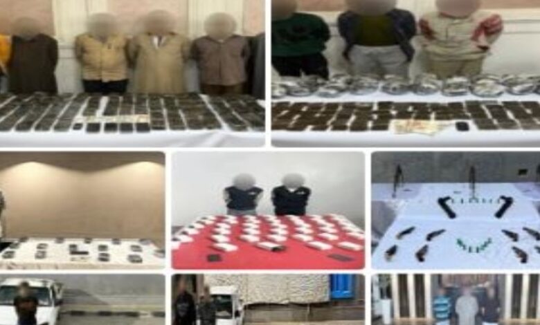 أكدت معلومات وتحريات قطاعى (الأمن العام – مكافحة المخدرات والأسلحة والذخائر غير المرخصة) بالتنسيق مع أجهزة الوزارة المعنية قيام بؤر إجرامية بنطاق عدد من المحافظات تضم (عناصر جنائية شديدة الخطورة) بجلب كميات من المواد المخدرة والأسلحة النارية غير المرخصة تمهيداً للاتجار بها.