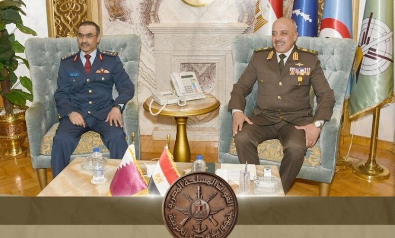 التقى الفريق أحمد خليفة رئيس أركان حرب القوات المسلحة، الفريق ركن طيار جاسم بن محمد المناعى رئيس أركان القوات المسلحة القطرية والوفد المرافق له الذى يزور مصر حالياً فى زيارة رسمية تستغرق عدة أيام، حيث أجريت له مراسم استقبال رسمية بمقر الأمانة العامة لوزارة الدفاع وعزفت الموسيقات العسكرية السلام الوطنى لكلا البلدين.تناول اللقاء مناقشة عدد من الموضوعات ذات الاهتمام المشترك، وسبل تعزيز أوجه التعاون العسكرى فى العديد من المجالات.