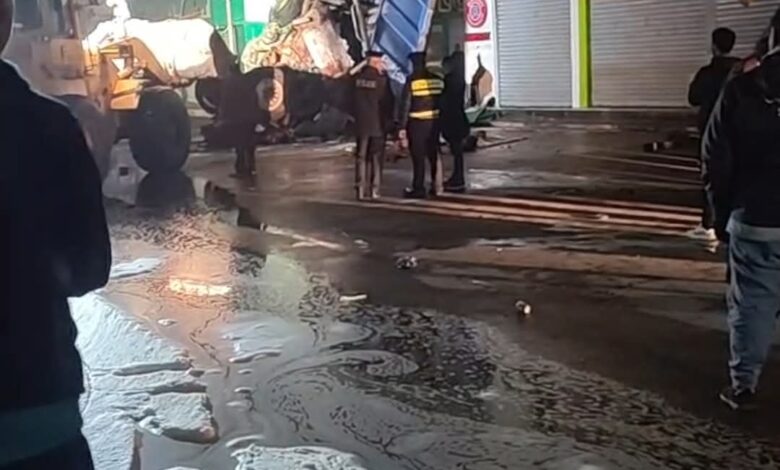 سقوط تريلا من أعلى وصلة الدائري يتسبب في حريق هائل ومصرع شخصين