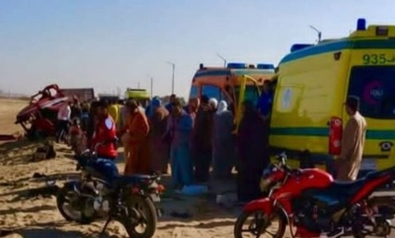 مصرع 4 أشخاص وإصابة 6 آخرين في تصادم سيارة نقل بأخرى على الصحراوي بالمنيا