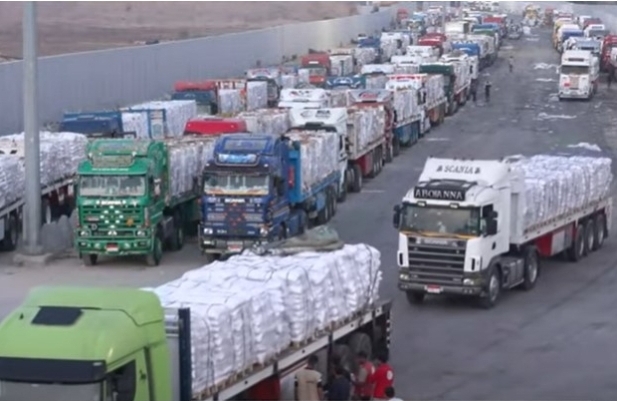 انطلاق شاحنات المساعدات للقافلة 104 تمهيدًا لدخولها عبر معبر كرم أبو سالم