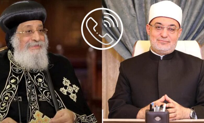 مفتي الجمهورية يُجري اتصالًا هاتفيًّا بقداسة البابا تواضروس للاطمئنان على صحته
