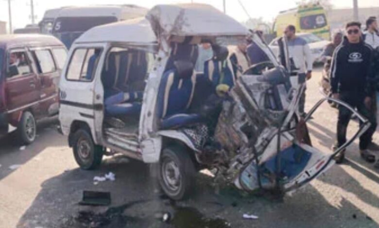 مصرع تلميذ وإصابة 10 في تصادم سيارة نقل وميني باص بطريق بلبيس – العاشر من رمضان