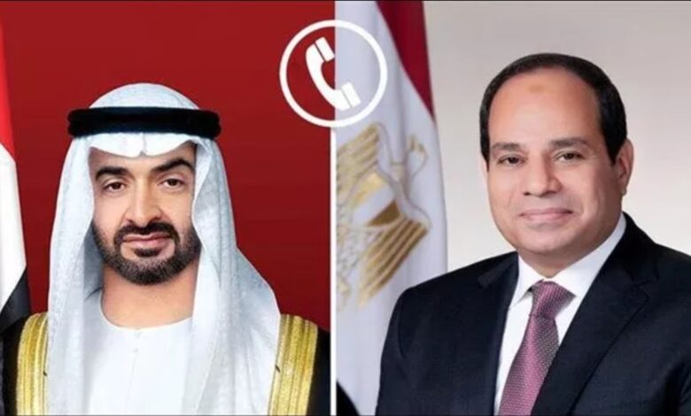 أفادت وكالة الانباء الإماراتية، بأن الشيخ محمد بن زايد آل نهيان رئيس دولة الإمارات بحث مع الرئيس عبد الفتاح السيسي، مختلف مسارات التعاون والعمل المشترك خصوصًا في المجالات الاقتصادية والتنموية وإمكانات تطويرها بما يخدم أولويات التنمية والمصالح المشتركة للبلدين ويعود بالخير والنماء على شعبيهما.