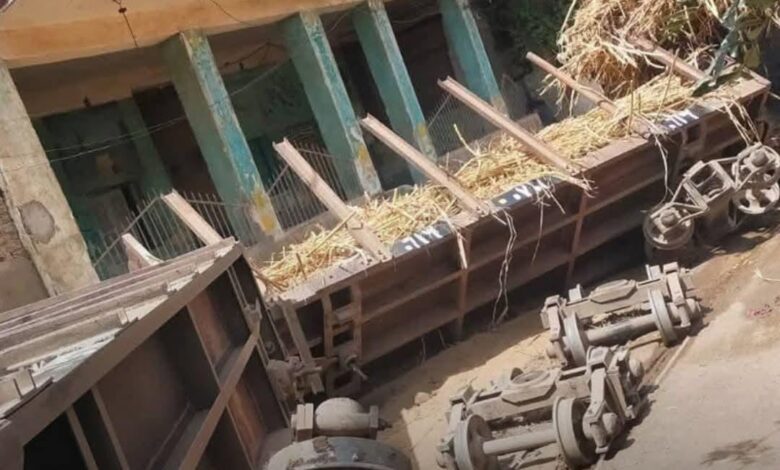 خروج قطار قصب عن القضيب بمنطقة أدفوا بأسوان