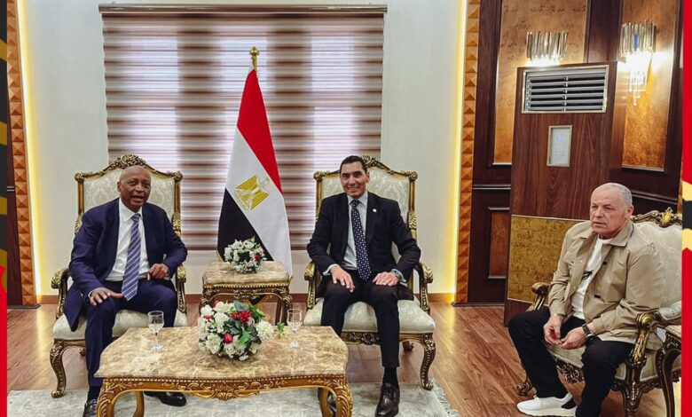 جوهر نبيل وزير الرياضة يستقبل موتسيبي رئيس الكاف بحضور هاني أبو ريدة رئيس اتحاد الكرة.