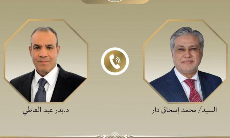 تلقى د. بدر عبد العاطى وزير الخارجية والتعاون الدولي والمصريين بالخارج، اتصالاً هاتفياً من السيد محمد إسحاق دار نائب رئيس الوزراء ووزير خارجية جمهورية باكستان الإسلامية، يوم الأربعاء ١٥ ابريل، وذلك للوقوف على آخر مستجدات الوضع الإقليمي وتنسيق الجهود المشتركة بين البلدين.