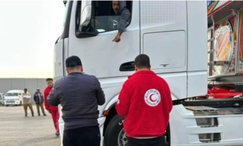 الأحمر المصري يطلق قافلة “زاد العزة 185” بـ 104 آلاف سلة غذائية وأطنان من المواد الطبية والإغاثية
