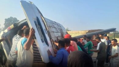 إصابة 12فتاة فى إنقلاب ميكروباص محمل وردية عمالة بطريق الخطاطبة اليافطة منوفية